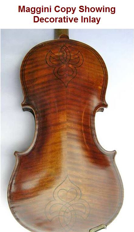 You can see more Maggini designs, as well as other historic and recent decorated violins and fiddles in our photo gallery: Historic and New Rosed and Inlaid Instruments