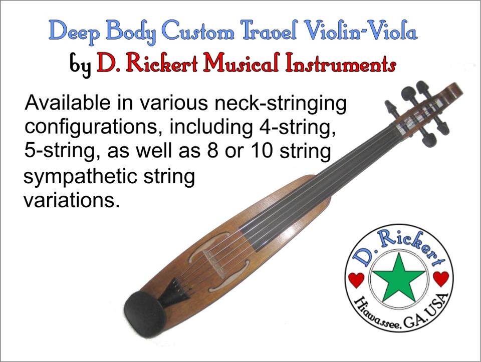 D. Rickert Musical Instruments makes some of the world’s finest Modern Travel Violins (aka Backpacker Fiddles) and more models (6 models currently; one a 5-string). We also make two Pochette models; one a Baroque (early to mid-1700s) and one a Pre-Modern (1780s). All of these instruments are available at the Don Rickert Musician Shop.