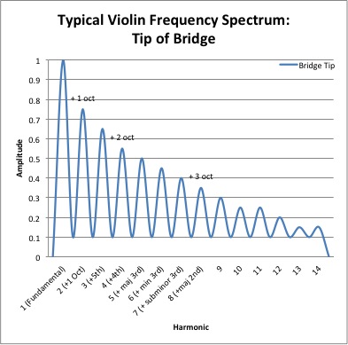 It is noteworthy that all of the above frequency spectrum graphs are based on actual spectrum graphs of a Stradivarius violin. So we can safely assume that instrument quality is not an issue here.