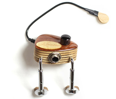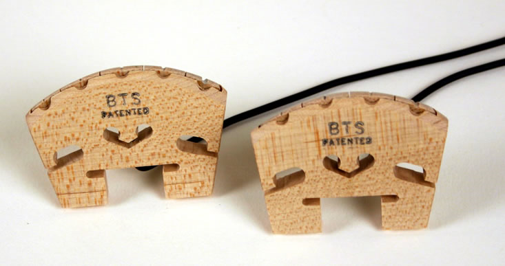 - Single transducer epoxied into a hole drilled or routed into a regular bridge (probably the most popular type used on acoustic violins)