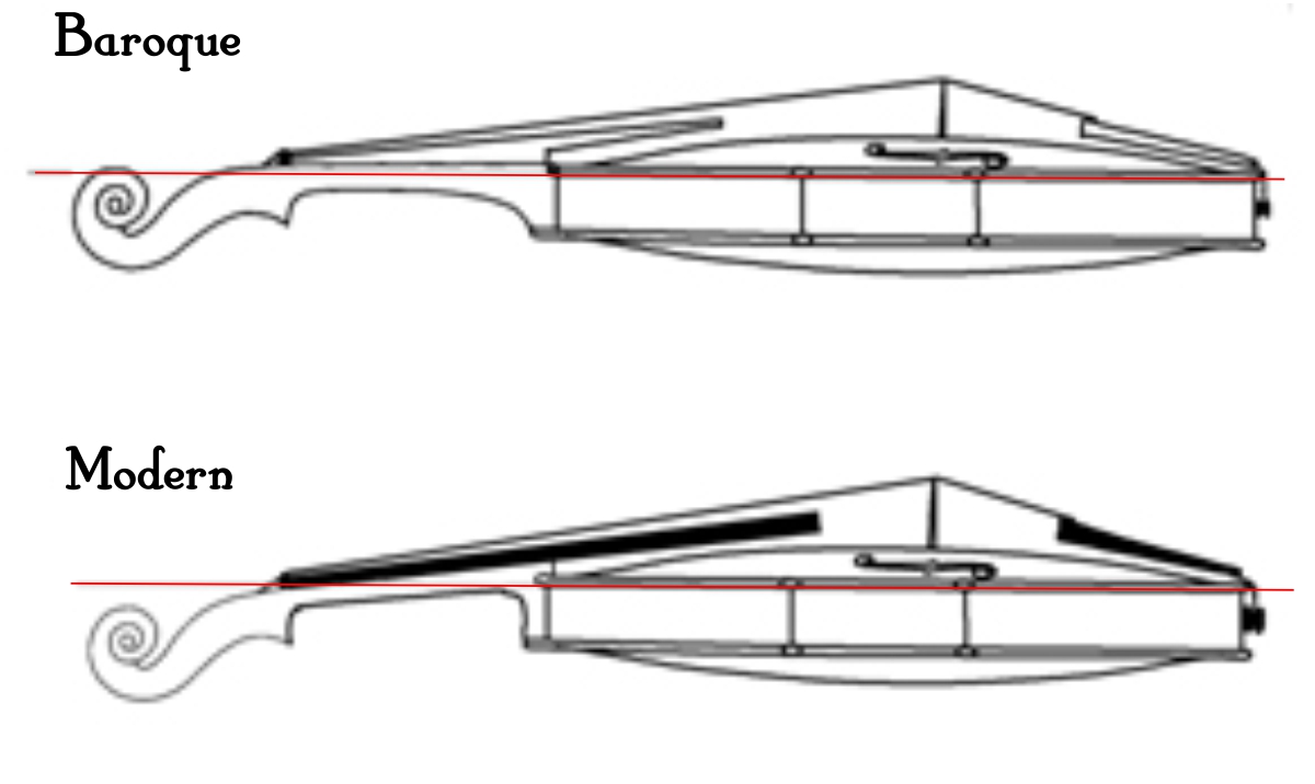 - Baroque fingerboards were shorter than modern fingerboards; however, how much shorter is still a matter of debate. See the illustration below. Click on the image for a larger view.