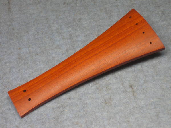 A baroque tailpiece, often decorated to match the fingerboard, generally has more of a square-edged shape than a modern tailpiece. See the illustrations below.