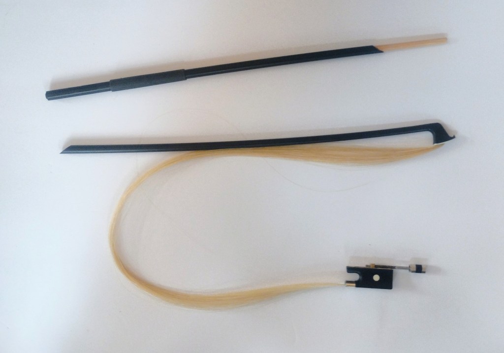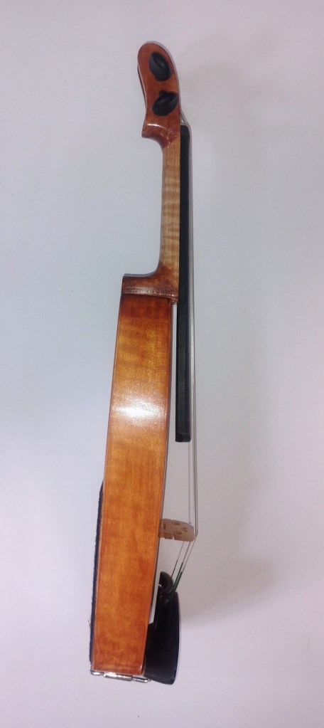 This completely new instrument has an almost full-size playable string length of 12.75 inches. The International Travel Violin is that it has a body length of approximately 12 inches (normal 4/4 violin has a 14” body) and a radically shortened “scroll-less” pegbox. The result is a full-size instrument with a total length of only 20”! This allows the use of a 5″x5″ case that is a mere 21” in length. It will fit into many TSA-certified 22” (height) carry-on roller bags!