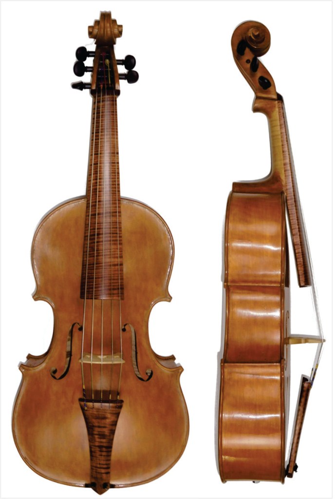 The “violoncello da spalla,” or “cello da spalla,” is a small, five-string cello played across the chest, similar to a viola or violin, and held by a shoulder strap, popular with Baroque period enthusiasts.